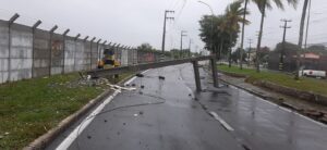 Um veículo colidiu com um poste na Avenida José Carlos Silva, na Zona Sul de Aracaju, na madrugada desta sexta-feira, 19. Com o impacto do acidente, a estrutura caiu, afetando o fornecimento de energia na região.