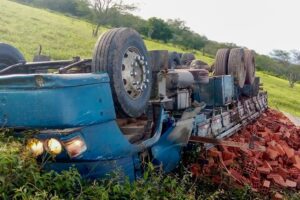 O acidente resultou na morte de um caminhoneiro de 34 anos que transportava blocos de cerâmica.