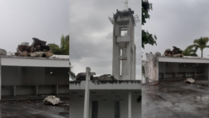 Manoel Azevedo é porteiro. Ele estava no trabalho quando presenciou a queda da imagem da Santa. “Eu estava trabalhando quando de repente o vento derrubou ela. Eu queria estar com o celular ligado pra poder gravar, né? Mas não deu tempo. Mas é um negócio estranho, era muito vento, muita chuva, muito relâmpago também. A santa fica em uma parte alta da cidade”, contou.