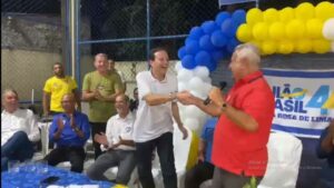 “A gente já brigou o que tinha que brigar no passado. A gente não tem mais nada para brigar, mais nada. E quero dizer a ele que estamos juntos nesse projeto”, disse JB, ao saudar André Moura. Moura levantou e deu um abraço em Jackson.