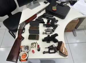 Como resultado da operação, foram apreendidas duas pistolas de calibre .380, com 65 munições; dois revólveres de calibre 38, com 13 munições; e uma espingarda de calibre 12, com uma munição.