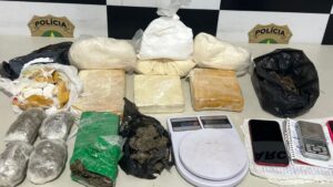 De acordo com as informações policiais, os presos em flagrante são um casal. Com eles, foram encontrados, aproximadamente, três quilos de substância semelhante à cocaína, um quilo de substância semelhante à maconha, dois quilos e meio de substância química usada para misturar com cocaína, dois aparelhos celulares, caderno com anotações do tráfico e duas balanças de precisão.