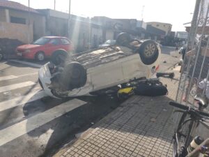 Um motorista embriagado ficou ferido após carro em que dirigia bater em outros dois veículos parados e em seguida capotar na Rua Alagoas, no bairro José Conrado de Araújo, zona norte de Aracaju. O acidente aconteceu na manhã desta segunda-feira, 24.