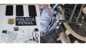 A equipe policial do presídio percebeu os objetos após passarem a cadeira de rodas pelo scanner de Raio X. Após uma revista minuciosa, foi possível localizar três celulares e acessórios como carregadores e fones de ouvido escondidos em embalagens nos apoios de pés da cadeira.