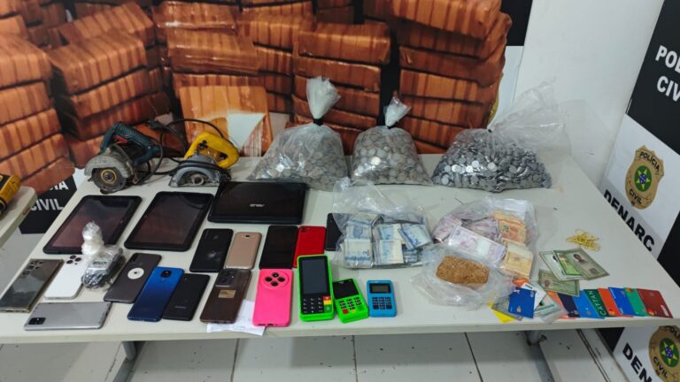 No cumprimento de medidas cautelares de busca e apreensão, foram encontradas drogas, uma grande quantidade de dinheiro trocado, além de materiais eletrônicos e outros objetos característicos da troca entre usuário e traficante.