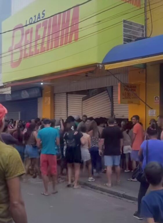 “Cheguei na loja por volta das 8h15 e já tinha muita gente querendo brinquedo. Entraram de uma vez só, a loja não deu conta, e começaram a arrombar a porta. Foi aí que chamaram a polícia”, contou uma mulher que presenciou o tumulto.